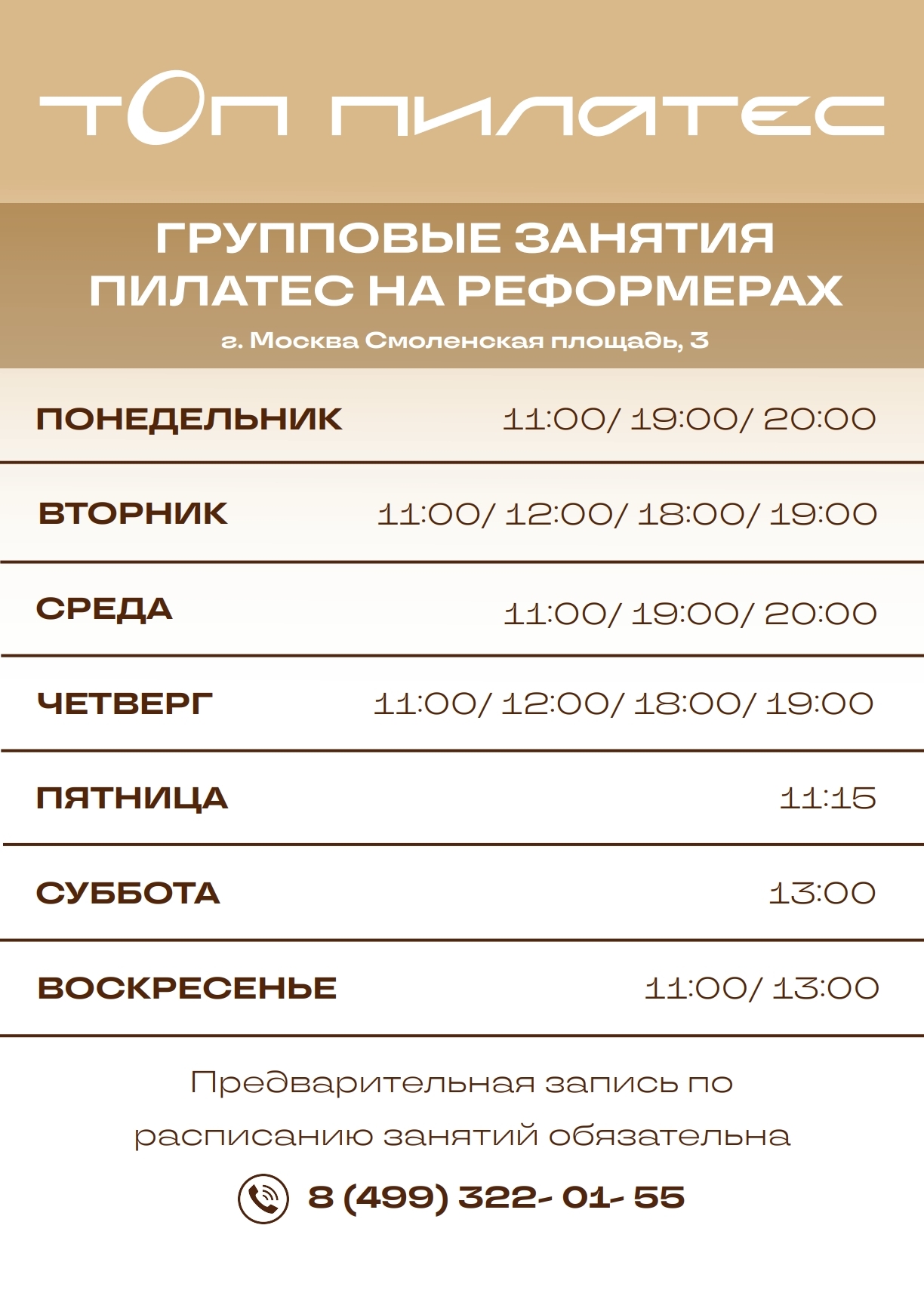 Запишитесь на персональную или групповую тренировку в удобной студии Топ Пилатес, откройте возможности нашего оборудования и почувствуйте, как работает система, где тело становится искусством.